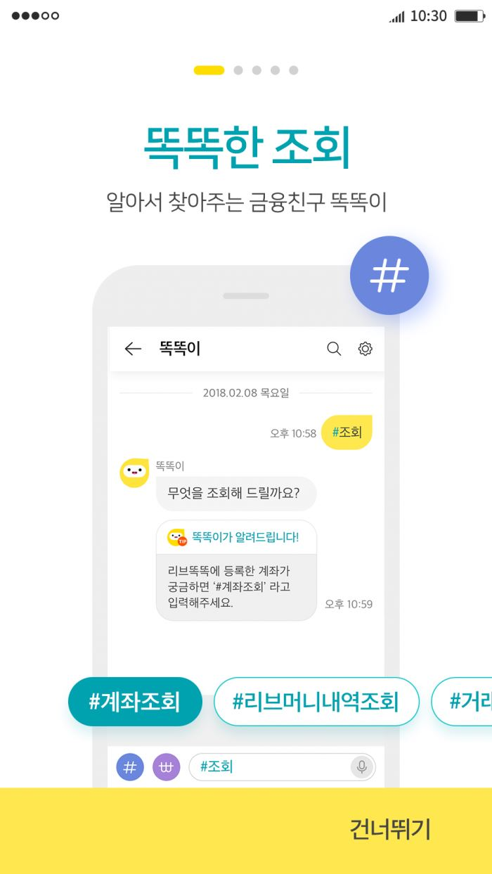 이번 업그레이드를 통해 금융비서 역할을 하는 '똑똑이'는 입출금 계좌, 카드 내역에 더해 개인이 보유한 '펀드'의 계좌정보 및 수익률을 간편하게 확인 할 수 있는 기능과 대출 거래내역 및 적용금리를 간편하게 확인할 수 있는 기능까지 확장해 편의성을 더욱 높였다.