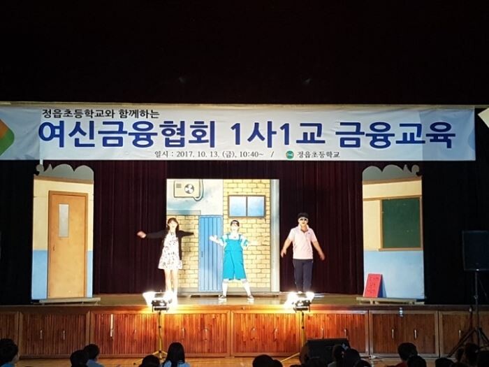 [토요경제=정종진 기자] 여신금융협회는 13일 1사1교 결연학교인 전북 정읍초등학교를 찾아가 4, 5학년 학생 150명을 대상으로 금융뮤지컬 '충동이와 슬기의 하루'를 진행했다.