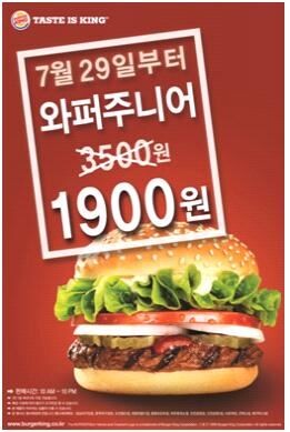 이번 프로모션은 버거킹 전국 매장에서 전 고객을 대상으로 7월 29~31일 오전 10시부터 오후 10시까지 진행되며, 매장 사정에 따라 조기 마감될 수 있다. 단, 특수매장(잠실야구장점, 문학야구장점, 오션월드점, 대명비발디점, 용평리조트점, 여주휴게소점, 인천공항점, 인천공항1점, 서초역점, 코엑스점, 메가박스점)은 행사에서 제외된다.