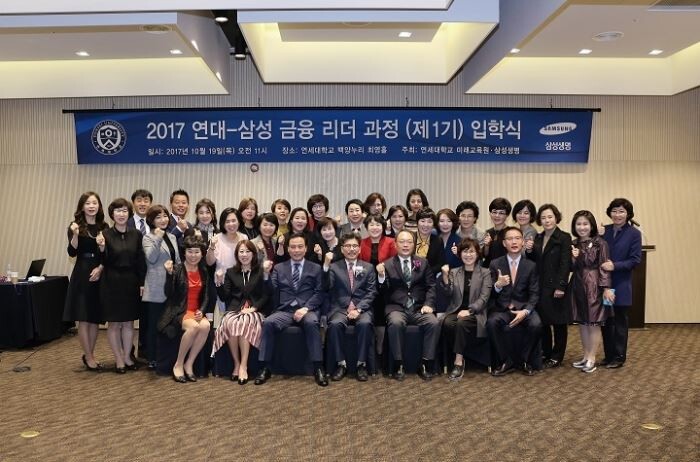 [토요경제=정종진 기자] 삼성생명은 10년 이상 활동중인 우수 컨설턴트를 대상으로 산학 연계 교육인 '연대-삼성 금융리더 과정'을 신설하고 지난 19일 1기 입학식을 가졌다고 20일 밝혔다.
