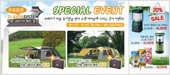 [토요경제=이완재 기자] 캠핑용품 업체 코베아(회장 강혜근)는 여름휴가철을 맞아 '2013년 고객감사 스페셜 이벤트'를 진행한다.