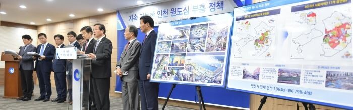 유정복 인천시장은 이날 기자회견을 열어 "원도심에는 인천시민의 76%가 살고 있지만, 주택 노후, 공원·주차장 부족 등으로 쇠퇴의 길을 걸어 왔다"며 "올해를 원도심 활성화의 원년으로 삼아 시민 중심의 주거 공간을 만들 것"이라고 약속했다.