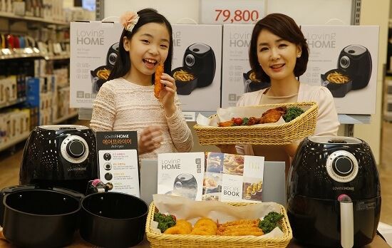 ▲ 25일 오전 서울 중구 이마트 청계천점에서 모델들이 기름 없이 최대 200도의 공기로 바삭한 튀김 요리를 만들 수 있는 에어프라이어를 소개하고 있다. 전국 가전매장이 있는 이마트에서 판매되는 러빙홈 에어프라이어는 시중 유사제품 대비 50% 이상 저렴한 79,800원에 판매된다.<사진=이마트>
