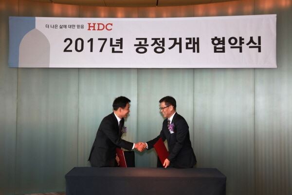 현대산업개발 대표이사와 협력사 대표가 서명하고 교환한 공정거래협약서에는 ▲공정거래위원회 4대 실천사항 준수 ▲공정한 계약 체결 및 이행 ▲하도급 법위반 예방 ▲금융지원, 기술개발 지원, 기술인력 지원 등의 상생협력지원 등의 내용이 담겼다.