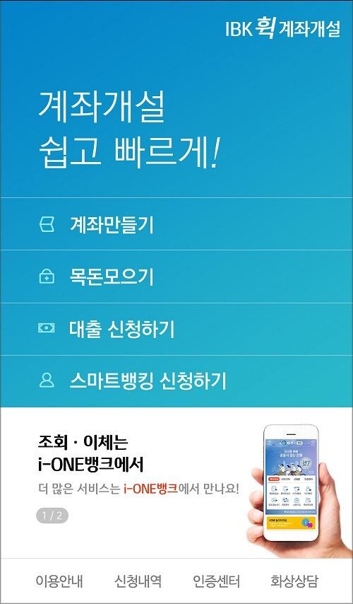내달 1일에는 고객이 기억하기 쉬운 휴대폰번호로 손쉽게 모바일에서 계좌를 만드는 'IBK 휙 계좌개설' 앱이 출시된다. 기존 비대면 계좌개설 앱인 '헬로 i-ONE아이원'을 개편해 최초 계좌개설뿐만 아니라 스마트뱅킹, 체크카드 가입까지 가능하다.