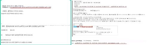 이와 관련, 티브로드가 “각 협력업체가 tsis와 체결한 계약이므로 모르는 일이다”고 해명하자 민주당 을지로 위원회는 본사 마케팅실에서 각 센터와 tsis간 급여업무대행 계약에 직접개입(계약 지시)한 것을 입증하는 메일을 공개하며 “어떻게 모든 센터가 동일한 내용으로 tsis와 ‘용역비 지급 대행 계약’을 체결하고 있는지 답을 해주고 있는 자료다”고 말했다.