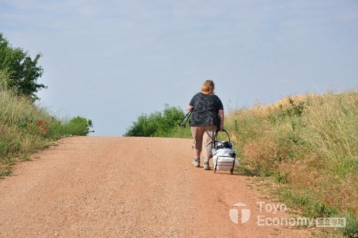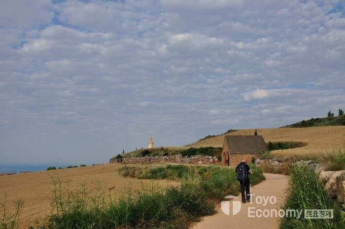 Manjardin 이후부터는 낮은 야산이 보이기는 하지만 평원을 가로질러 간다. Los Arcos까지 더 이상 마을이 없는 구간이다. 오전 9시가 넘어서면 햇빛이 뜨거워지기 시작한다. 그리고 3시 전후로 가장 기온이 높게 올라간다. 한낮에 기온은 33~35도 사이를 오가는 날이 많아졌다. 6월 이지만 이곳은 여름 시즌이다.