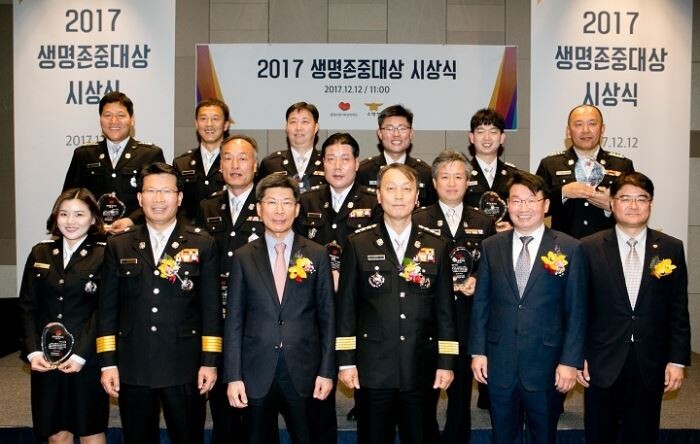[토요경제=정종진 기자] 생명보험사회공헌재단은 12일 대전 롯데시티호텔에서 국민의 생명과 재산을 지키기 위해 헌신한 현직 소방관을 선발해 상을 수여하는 '2017 생명존중대상' 소방부문 시상식을 가졌다.
