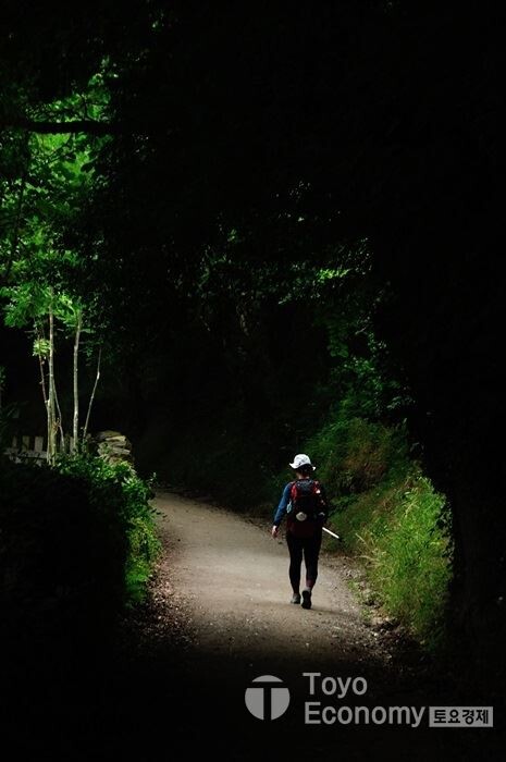 오세브레이로 알베르게를 나서면 길이 두갈래로 나누어 진다. 알베르게 아래 도로를 따라 가는 길과 알베르게 뒤편 산길을 따라 가는 길이다. 어디를 가도 거리차이는 크게 없지만 안전하고 편하게 가려면 도로보다는 숲 오솔길을 따라가는게 편하다. 대부분에 순례자들도 이길을 따라 나선다. 아직 해가 뜨지 않은 새벽에 좁은 길에 헤드랜턴 불빛만이 길을 밝혀주고 있다. 헤드랜턴대신 스마트폰 플래시를 이용해도 되지만 추운날에 손에 스마트폰을 들고 비추면 가는것은 손도 시렵기도 하지만 손에 자유가 없어 행동에 제약이 따른다. 게다가 넓게 비추기보다 좁고 멀리까지 비출 수 있는 헤드랜턴이 어두운날 길을 찾아 나설때는 최고 도움이 된다. 천천히 길을 따라 내리막길을 걷는다. 더는 오르막이 없겠지라는 생각은 1시간도 안되어 깨졌다. san roque 언덕까지는 다시 오르막이 이어졌다. 너무 방심을 했는지 다시 만난 오르막길이 무척 고되고 힘들게 느껴졌다. 짧지만 오세브레이로를 올라올때보다 힘들다는 기분이다.