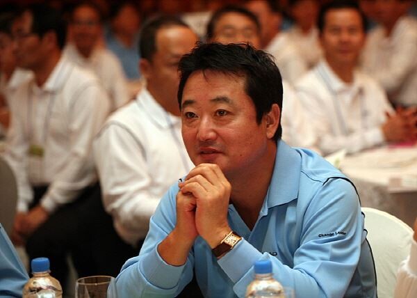 ▲ 이웅열 코오롱그룹 회장은 2007년 11월5일 사내 행사에서 전 임직원들에게 변화와 혁신을 통한 비전을 주문했다. 행사진행 과정을 기켜보고 있는 이 회장.