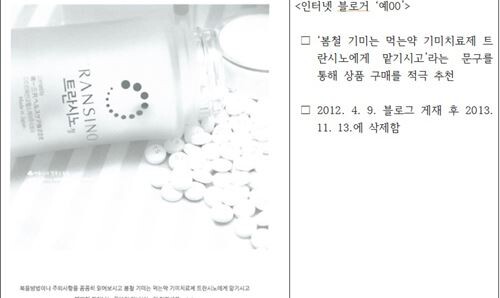 공정위는 지난 2011년 ‘추천·보증 등에 관한 표시·광고 심사지침’을 개정해 경제적 대가를 주고 블로그, 카페 등에 소개나 추천 글을 올리는 경우 대가 지급 사실을 공개하도록 한 바 있다. 하지만 보령제약은 대가 지급 사실을 은폐해, 광고임에도 전문가와 소비자의 소개·추천글인 것처럼 소비자를 기만한 것이다.