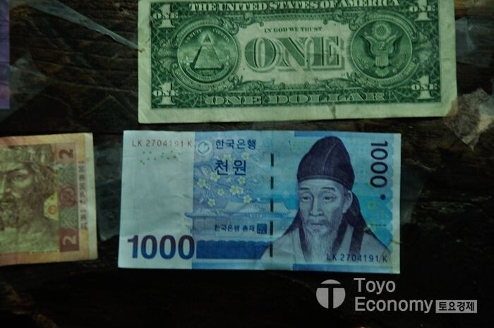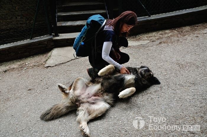 몇 면에 가득 채워진 각국의 지폐와 동전이 눈을 사로잡는다. 가져가고 싶다기 보다 신기하고 나또한 동전 하나 올려 놓고 나오고 싶어 100원 짜리 동전을 하나 걸쳐두고 왔다. 내가 다녀갔음을 순례길에 남기는 흔적이다. 밖에는 커다란 개가 많았다. 사람들을 좋아하는지 우리가 보이자 마자 벌러덩 누워 자기 배을 보여주며 씀다듬어 달라는 듯이 가만히 일행 중 한 명을 응시한다.