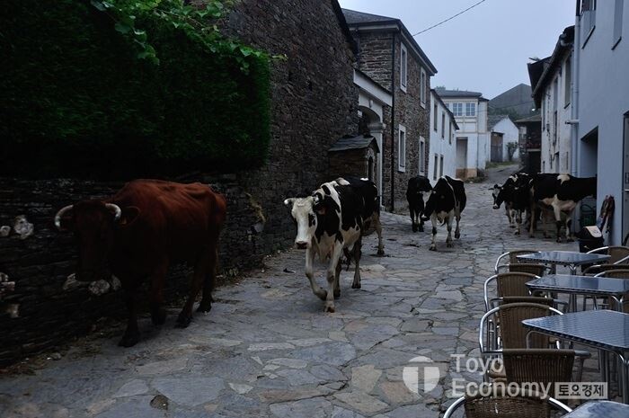얼마나 쉬었을까? 오늘은 거리가 짧다보니 어느때 보다 여유로왔다. Bar에서 거의 한 시간여 시간을 보내고 나서야 간신히 자리를 나섰다. 3총사는 진작에 나갔고 우리는 다시 시골향기 가득한 길을 나섰다. 숲과 나무만 있는 사진을 찍어 보내면 한국 어디라고 해도 믿을 것이다. 한적한 시골길에 뜨문뜨문 보이는 순례자 외에는 보이는 것이 따로 없다. 오늘도 어김없이 소몰이하는 풍경이 보였다. 수많은 소떼가 지나갈때는 길을 메우기 때문에 가로질러 갈 수 없어 소떼가 빠져나가기만을 기다렸다. 이런 여유도 오랜만이다.