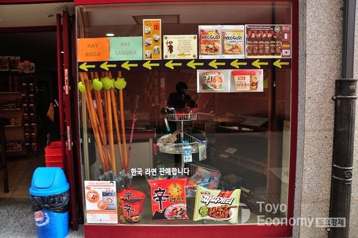 그렇게 작은 도로와 작은 하천 몇 개, 그리고 지나가듯 만나고 인사하는 순례자들을 보내고 나서야 Sarria 앞에 다다랐다. 제법 큰 도시인데다가 순례길을 걸을때 필히 Sarria부터 Santiago de Compostela까지는 걸어야만 순례길 인증서를 받을 수 있다. 그래서 어느 도시 보다 훨씬 많은 순례자들이 붐볐고 순례자여행을 위해 찾아오는 사람들도 여기서 부터 시작하기에 꽤나 활기찬 도시이다. 도심 초입에 한국라면을 판매하는 문구가 너무 쉽게 보였다. 생각할 겨를도 없이 마트로 들어가 짜파게티와 계란, 그리고 김치 캔을 구매했다. 다른 일행들은 그냥 둘러보다 그냥 나간다. 나는 이것을 저녁으로 먹을 생각이였지만 숙소에 도착하자 마자 배고픔에 짜파게티를 먹고 말았다. 우리가 정한 숙소는 도심 가장 높은 지점에 있다. 그래서 수없이 많은 알베르게를 거쳐가야 했다. 그냥 시내 근처로 숙소를 정하는게 나을뻔했다는 후회가 들은것도 처음이다.