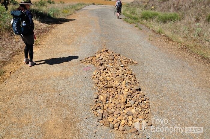 오늘 따라 동양인이 많이 보인다. 대부분 한국인들이다. 우리보다 늦게 출발했을텐데도 앞질러서 걷는다. 빠른 속도로... 그저 Buen Camino만 말하고 우리앞을 앞서간다. 여기서 만나는 한국인들은 반갑지만, 순례길을 벗어나 스페인 다른 지역에서 만나는 한국인에게 반가움을 표시하면 이상하게 쳐다본다. "도를 아세요?"라는 사람이 말거는 거처럼 거부감을 표한다. 하지만 순례길에서는 그렇지 않다. 같은 국적을 가진 사람들끼리 쉽게 친해지고 도와주는 곳이 여기이다. 그러면서 의지하며 걷는 사람들도 생긴다.