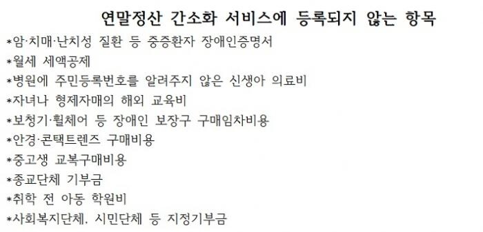 국세청의 연말정산 간소화 서비스를 통해 편리하게 연말정산 관련 서류를 조회하고 발급받을 수 있다. 공인인증서만 있다면 누구나 쉽게 관련 정보를 얻을 수 있다. 그러나 연말정산 간소화 서비스에 자동으로 등록되지 않는 정보도 있다는 점은 명심해야 한다. 일례로 안경이나 렌즈 구매비용은 자동으로 집계되지 않는다. 또 부양가족에 대한 의료 지출은 당사자의 정보 제공 동의를 받아야만 자동 등록이 가능하다. 자신이 직접 챙겨야만 하는 자료는 꼼꼼히 확인해 첨부해야 세금을 아낄 수 있다.