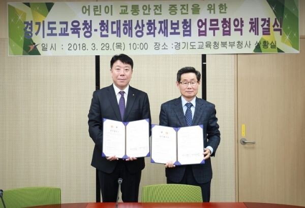 협약에 따라 현대해상과 경기도교육청은 초등학교 통학로 안전개선과 안전교육 콘텐츠 제공을 위한 교류와 협력을 강화하기로 했다.