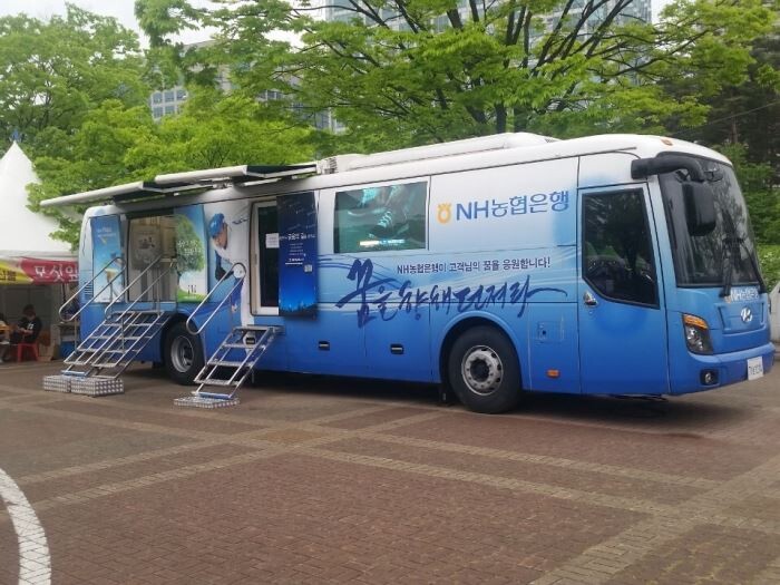 이동점포에서는 현금자동입출금기(ATM)를 이용할 수 있고 구권 지폐를 신권으로 바꿀 수도 있다.