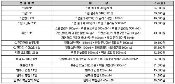 장기불황 및 소비심리 위축으로 인해 상대적으로 실용적이면서도 중저가인 가공식품 선물세트가 큰 인기를 끌고 있는 가운데, CJ제일제당은 올해 지난해 대비 물량을 10% 수준 늘린 180여종, 620만 세트를 준비했다. 명절 최고 인기 품목인 ‘스팸’을 중심으로 ‘CJ 알래스카 연어’와 ‘프리미엄 식용유’ 등을 구성한 실용적이면서도 실속 있는 다양한 세트들을 선보였다. ‘건강한 선물세트’, ‘슈퍼스타 선물세트’ 등 건강 이미지를 강조한 차별화된 신규 세트도 구성했다.
