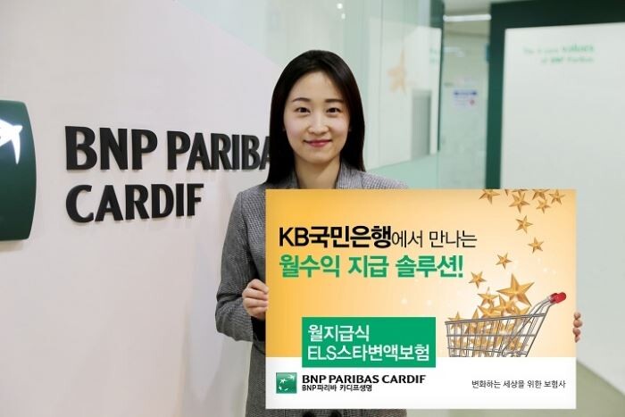[토요경제=정종진 기자] BNP파리바카디프생명은 보험을 통해 ELS에 장기 투자하며 매월 수익을 받을 수 있는 '월지급식 ELS스타변액보험(일시납)'을 출시했다고 12일 밝혔다. 이 상품은 KB국민은행을 통해 가입할 수 있다.