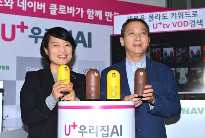 [토요경제=여용준 기자] SK텔레콤과 KT가 ‘누구’와 ‘기가지니’로 경쟁하는 가운데 LG유플러스가 네이버와 협업하는 전략으로 시장에 대응한다. LG유플러스와 네이버는 18일 서울 용산 LG유플러스 사옥에서 양사가 공동으로 서비스하는 ‘우리집 AI’를 공개했다.