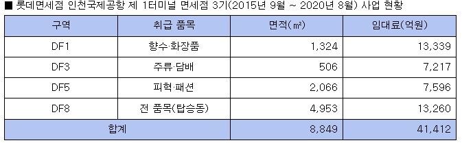 롯데면세점은 2001년 인천공항 면세점 1기 사업부터 한 차례도 빠짐없이 면세점을 운영해 왔다. 1기(2001년 2~2008년 1월) 4845억 원, 2기(2008년 2~2015년 8월) 2조6억 원 등 임대료를 납부해왔다. 2015년 3월 3기 사업 입찰 당시 롯데면세점은 매년 50% 이상 늘어나는 중국인 관광객 매출 성장세 등에 맞춰 임대료를 4조1412억 원으로 산정했으나 지난해 고고도미사일방어체계(사드) 사태로 중국인 관광객이 급감하면서 큰 폭의 적자를 보게 됐다는 게 회사 측 설명이다.