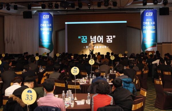 제품 세미나의 경우 올해 강화될 환경규제에 대한 KCC의 대응방안과 유통 대리점용 신제품과 DIY용 신제품인 '숲으로멀티멜골드'·'숲으로락카' 등이 소개돼 대리점의 높은 관심과 함께 큰 호응을 얻었다. 아울러 '고도원의 아침편지'로 유명한 고도원 작가로부터 특강을 들으면서 일과 삶의 균형을 유지하고 비전을 찾을 수 있는 시간도 가졌다.