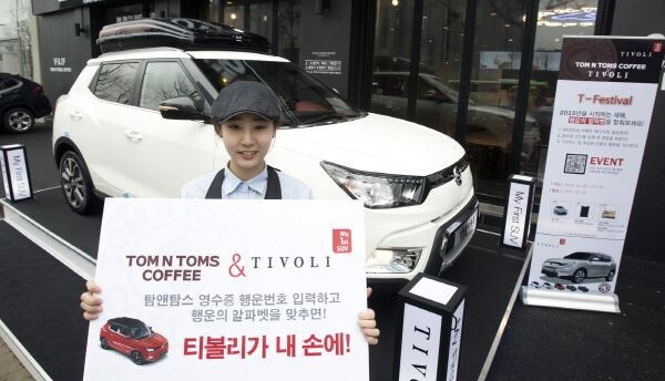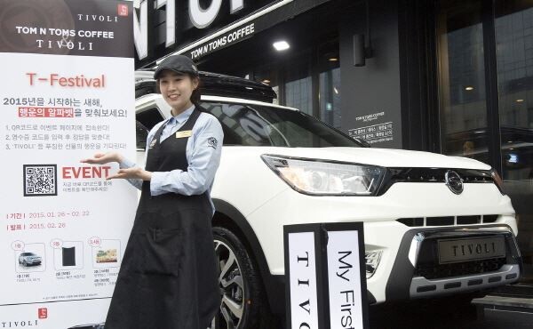 [토요경제=송현섭 기자] 쌍용자동차가 '티볼리' 출시를 기념해 커피전문점 브랜드 '탐앤탐스'와 함께 공동마케팅에 나선다고 27일 밝혔다.