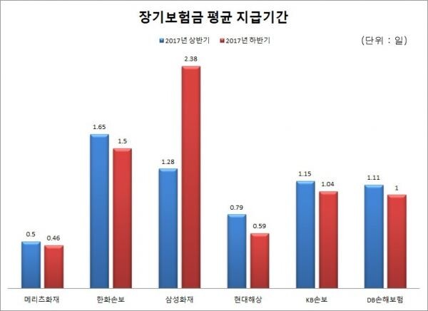 5일 손해보험협회 공시에 따르면 메리츠화재 등 14개 손해보험회사의 지난해 하반기 장기보험 보험금 평균 지급기간은 1.17일로 집계됐다.