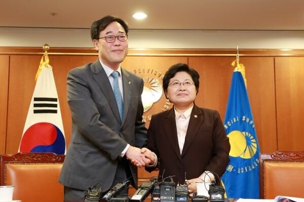 5일 정현백 여성가족부 장관과 김기식 금융감독원장이 관행 개선을 약속했다.