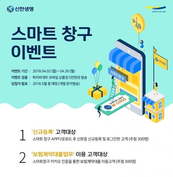 [토요경제=정종진 기자] 신한생명은 모바일 '스마트창구' 어플리케이션 개편을 기념해 이달 말까지 경품 증정 이벤트를 진행한다.
