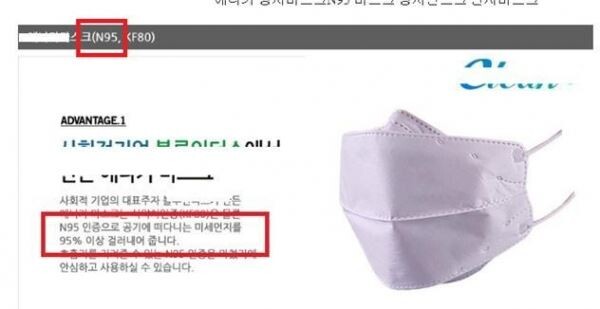 공산품 마스크를 황사·미세먼지 차단 등에 효과가 있다고 광고한 허위 광고 68건, 미세먼지 차단 효과만 인정받은 KF80의 보건용마스크를 감염원 차단 효과(KF94, KF99)도 있는 것으로 광고한 과대 광고 70건 등이다.