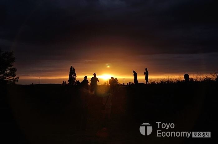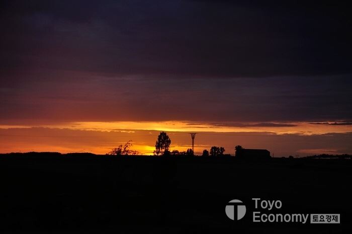 Bercianos de Camino에서는 다같이 저녁식사를 하고 알베르게 옆 공터에서 빙 둘러서서 자기 소개를 하는 시간이 있다. 해질무렵 시작한 자기 소개의 시간은 Carrion이후 두 번째이다. 익숙하게 짧은 영어로 내가 찾아온 이유와 내가 하는 일을 소개했다. 모두가 마무리 될 즈음, 해가 지평선에 가까워지기 시작했다. 짧은 순간에 카메라를 들고 나와야겠다는 생각으로 숙소로 들어갔다가 다시 나왔다. 그리고 지평선에 걸친 일몰 순간을 카메라에 담기 시작했다.