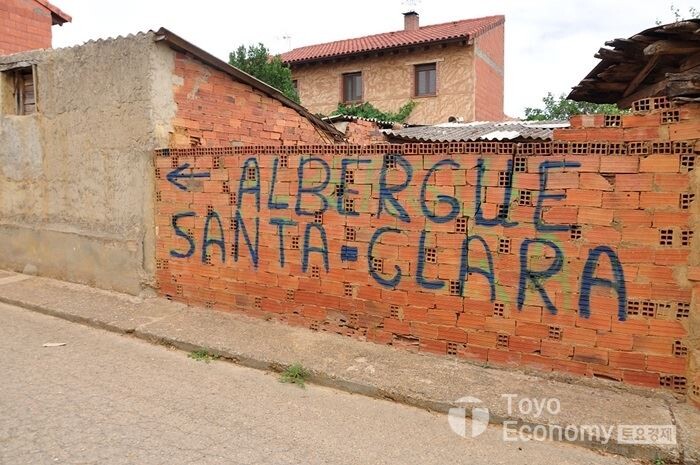 2시간 여 걸어서야 작은 마을에 다다랐다. 이곳은 2개의 알베르게가 있다. 하나는 수녀원에서 운영하는 Santa Clara알베르게이고, 하나는 자원봉사자들이 운영하는 수도원소속의 알베르게 이다. 아담한 Santa Clara알베르게를 찾아갔으나 문이 닫혀있다. 이곳을 일행의 배낭을 트랜스퍼 서비스를 이용하여 보냈었는데 어떻게 찾아야 할지 난감하다. 다시 휴대폰으로 이메일을 보내 확인해 보니 bar에 보관했다고 한다. 이제 Bar와 다른 알베르게를 찾아가야 했다.