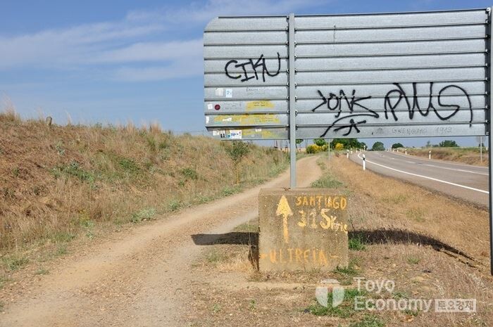 또 다시 도로옆 길을 따라 걷는다. 끝없이 펼쳐진 길고 긴 직선에 이르는 길... 그 사이에 Real Camino라는 이름이 붙은 마을을 꽤나 만났다. 순례길이 스페인 역사에 있어서 큰 자리를 차지하고 있음을 나타낸다. 이곳이 진짜 까미노길이라는 것을 자랑하듯이 지명에 박아 놓았다. 앞으로도 몇 곳을 더 만날지 알 수 없다. 진짜 순례길 마을은 이름만 남고 도시의 모습은 보이지 않는 작은 마을로 변모했다. 알베르게마저 없다면 그냥 지나쳐버릴 마을이었을 것이다.