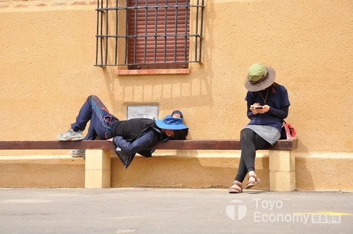 다닥다닥 붙어있는 알베르게는 한 사람이 움직이기 시작하면 부시럭 거리는 소리에 다른 사람들도 깨어난다. 늦잠자려는 사람이 있다면, 꽤나 곤혹스러운 30분의 시간을 보내야 다시 조용한 알베르게의 침실을 차지한다. 어제밤에 끙끙앓는 소리를 내넌 바다바람님이 오늘따라 더욱 힘들어 한다. 밤새 제대로 잠을 못잤는지 쾡한 모습으로 일어났다. 배낭을 지고 20여일 넘게 오더니 몸살이 난듯 싶다.