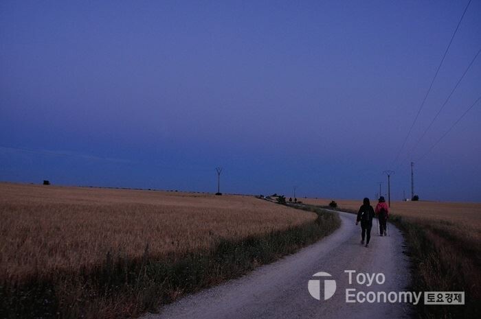 메세타의 새벽은 싸늘하다. 자켓의 지퍼를 쭈욱 당겨 찬기운이 들어올 틈을 없애고 팔짱을 끼운채 오늘의 일정을 시작했다. 스페인의 6월은 꽤나 덥다고 말하지만 실제로는 그렇지 않다. 올해는 유난히 더운 사이클의 시기라는데 메세타지역은 그렇지 않다. 해가뜨고 구름이 없으면 꽤 덥지만, 구름이 많고 바람이 불어준다면 시원하다 못해 싸늘함을 느끼며 걸어야 한다.