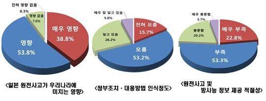 그러나 소비자의 76.1%는 일본 원전사고와 방사능 관련 정보가 ‘국민들에게 충분히 제공되지 않고 있다’고 생각했고, 68.9%는 일본 원전사고에 대한 우리 정부의 조치와 대응 내용을 모르는 것으로 나타났다.