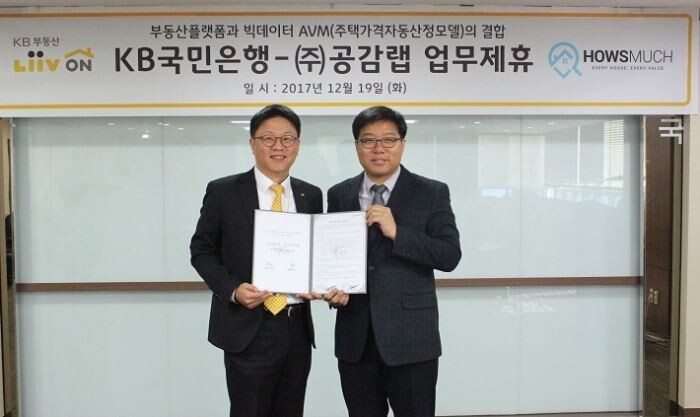 국민은행은 이번 서비스 구축을 위해 지난 19일 여의도 세우회본점에서 빅데이터 기반 주택시세 산정 시스템을 개발한 공감랩과 업무협약을 체결했다. 이를 통해 향후 ▲다세대·연립 등 주택시세 자동산출과 데이터 분석 ▲주택시세 담보평가 활용, ▲통계지표 및 시세 서비스를 제공할 예정이다.