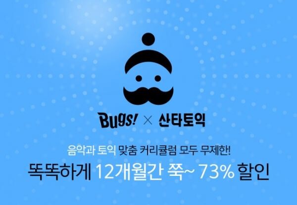 [토요경제=정동진 기자] NHN벅스는 11일 에듀테크 기업 뤼이드와 벅스와 산타토익을 특별 할인가에 제공하는 벅스 x 산타토익 상품을 출시했다.