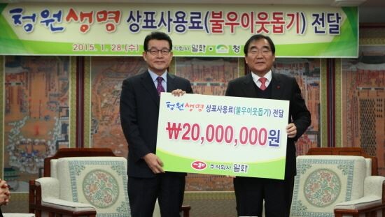 특히 청원생명 브랜드 사용료 전달은 지난 2013년에 이어 두 번째로, 청원생명 브랜드를 활용한 ‘청원생명 일화생수’를 판매한 수익금을 청주시에 전달하고 있다.