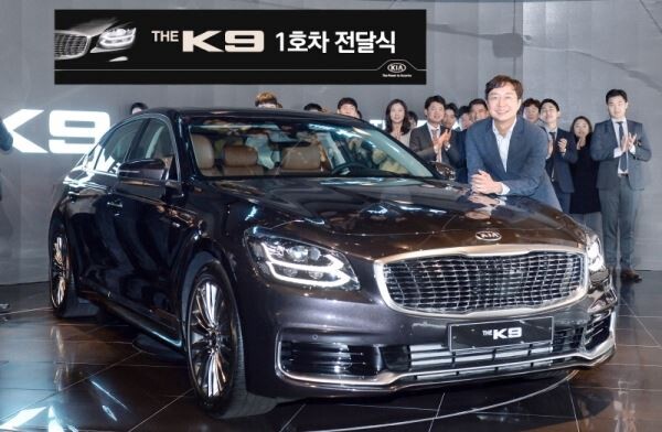 기아차는 12일 서울 압구정동 기아차 브랜드 체험관 ‘비트 360’에서 권혁호 국내영업본부장(부사장) 등 회사 임직원이 참석한 가운데 1호차 주인공인 유 교수에게 더 K9을 전달 행사를 가졌다.