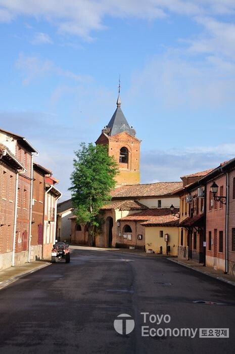 레온에 가까워질수록 메세타평원 구간도 끝나가고 있다. 한낮을 제외하고는 구름끼고 밤에 살짝 내리는 비때문에 싸늘한 날씨가 많았다. 산티아고의 6월은 무척 더워서 고생할거라는 말이 믿어지지 않을 정도이다. 초반 며칠 더위때문에 열대야로 잠을 못자고 방황했지만 이후에는 더위 때문에 고생한적이 없었다. 오히려 알베르게에 있는 담요를 끌어다가 덮어야할 처지가 몇 번 있었다. 베드벅이 무섭다 하지만 추위에 떠는것보다는 이렇게 하는것이 나았다. Bercianos del real camino 알베르게를 나서려고 보니 밖에 비가 내리기 시작했다. 굵은 빗줄기는 아니지만 우비 없이 걷기에는 불편할듯 싶어 바로 판초우의를 집어 쓰고 길을 나섰다.