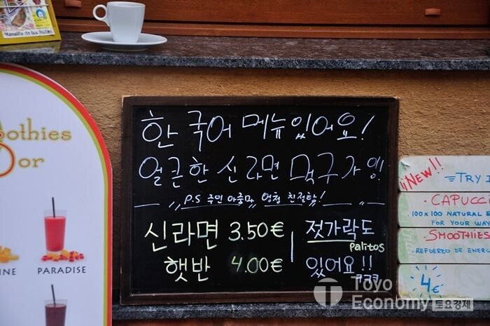 "한국어 메뉴 있어요. 신라면 먹구가잉!"