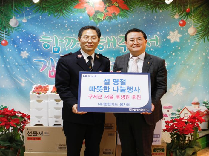 [토요경제=유승열 기자] NH농협카드는 사내 봉사단체인 'NH농협카드봉사단'이 설 명절을 맞이해 서울 서대문구 소재 '구세군 서울후생원'을 찾아 농산물과 성금을 전달하고 직접 준비한 떡국을 아이들과 함께 나눠 먹는 시간을 가졌다고 14일 밝혔다.