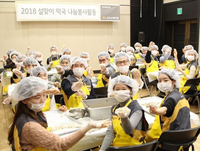 [토요경제=정종진 기자] KB손해보험은 14일 '설맞이 떡국 나눔봉사활동'을 통해 명절을 맞는 홀몸어르신들에게 직접 빚은 만두와 정성을 담은 떡국을 선물했다. 이날 활동중에는 임원들의 릴레이로 봉사활동을 이어가는 '희망봉사릴레이 선포식'도 진행됐다.