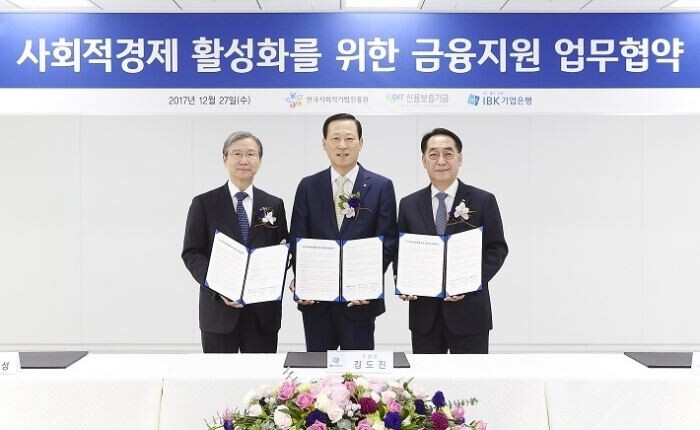 [토요경제=유승열 기자] 기업은행은 서울 중구 을지로 IBK파이낸스타워에서 한국사회적기업진흥원 및 신용보증기금과 '사회적경제 활성화를 위한 금융지원 업무협약'을 체결했다고 27일 밝혔다.