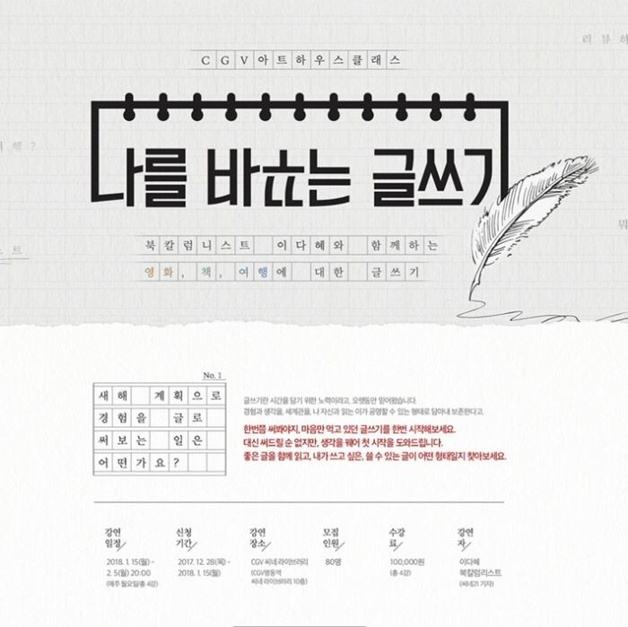 CGV아트하우스 '나를 바꾸는 글쓰기' 강좌 개최