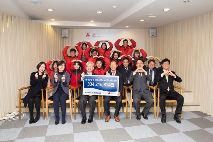 자율 동참한 현대건설 임직원은 2129명이고 현대종합설계 임직원 384명을 포함해 모두 2477명이 매월 3000원에서 3만원까지 2010년부터 모금한 누적 성금은 24억3000여만원에 달한다.