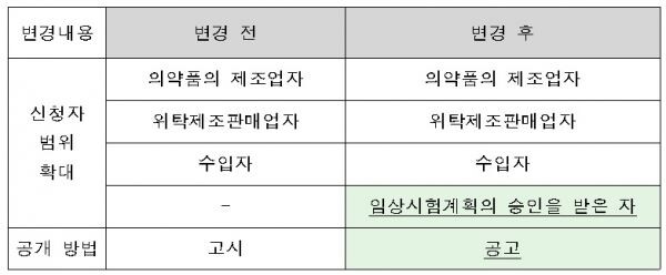 이에 따라 기존에는 의약품 제조업·위탁제조판매업·수입자만 희귀의약품으로 지정받아 제품을 개발할 수 있었던 반면, 앞으로는 임상시험 계획을 승인 받은 경우에도 신청할 수 있도록 했다.